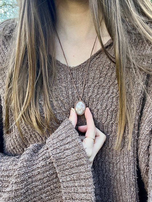 Connection & Intuition Peach Moonstone Necklace ‧₊˚ ☾. ⋅