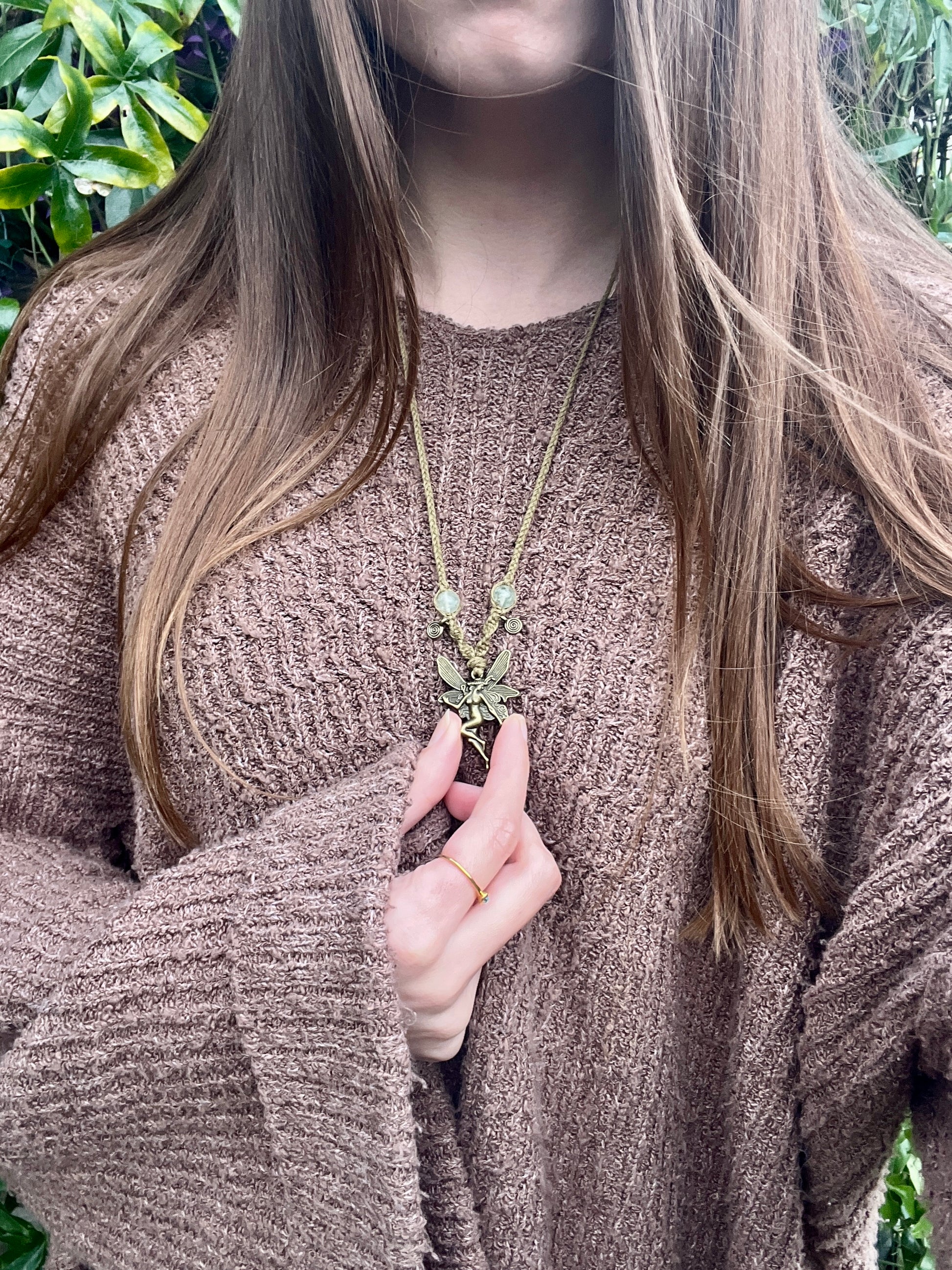 Prehnite Fairy Pendant Necklace ⋆˚꩜。